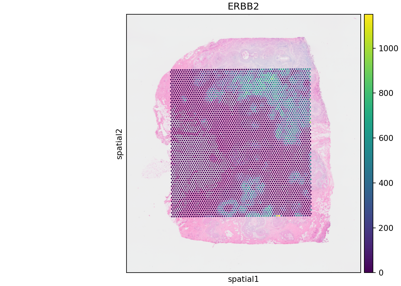 import matplotlib.pyplot as pltRead in spe.h5ad and visualize features or gene expression (e.g. ERBB2):