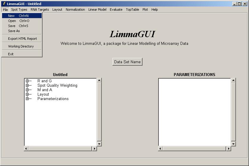 The limmaGUI main window is shown below.