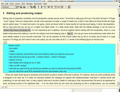 C'est particulièrement utile lorsque le texte est long et change régulièrement. Lyx est prêt pour le RCS. Il est donc simple de le mettre en place.