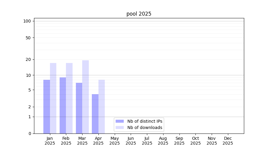Number of downloads for experiment package pool, year by year, from 2025 back to 2014 (years with no downloads are omitted):