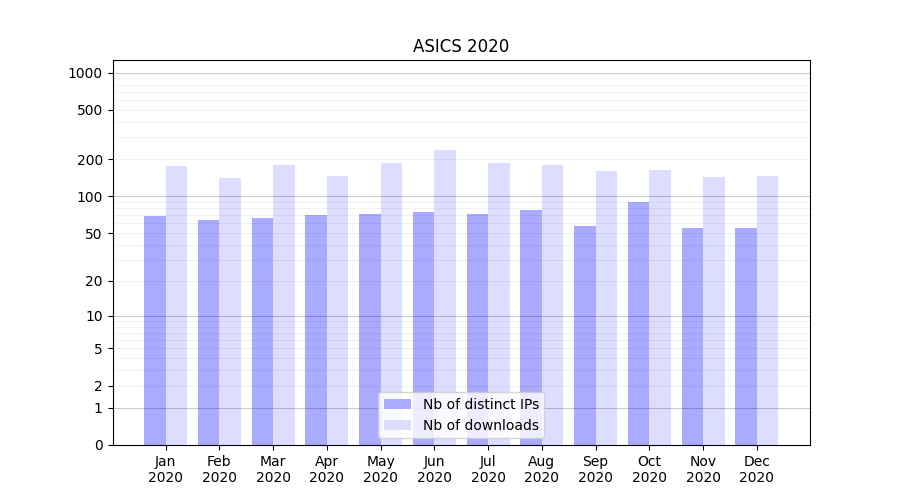 Number of downloads for software package ASICS, year by year, from 2025 back to 2014 (years with no downloads are omitted):