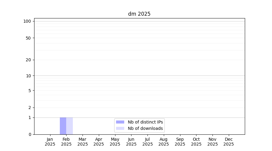 Number of downloads for software package dm, year by year, from 2025 back to 2014 (years with no downloads are omitted):
