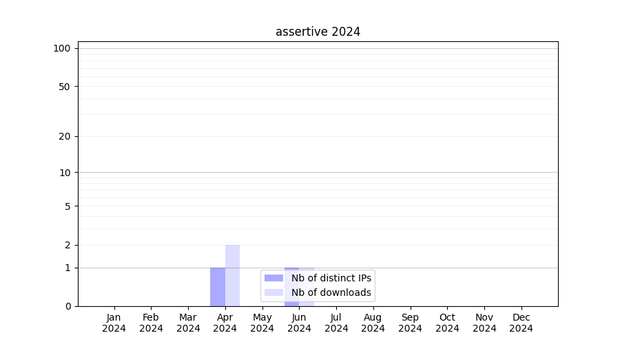 Number of downloads for annotation package assertive, year by year, from 2025 back to 2014 (years with no downloads are omitted):