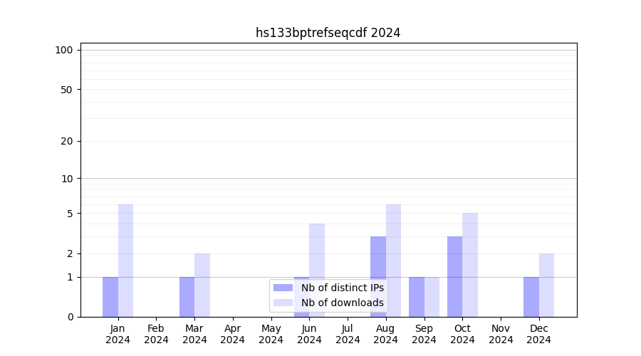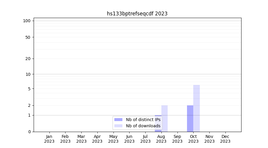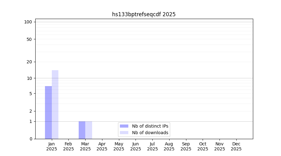 Number of downloads for annotation package hs133bptrefseqcdf, year by year, from 2025 back to 2014 (years with no downloads are omitted):