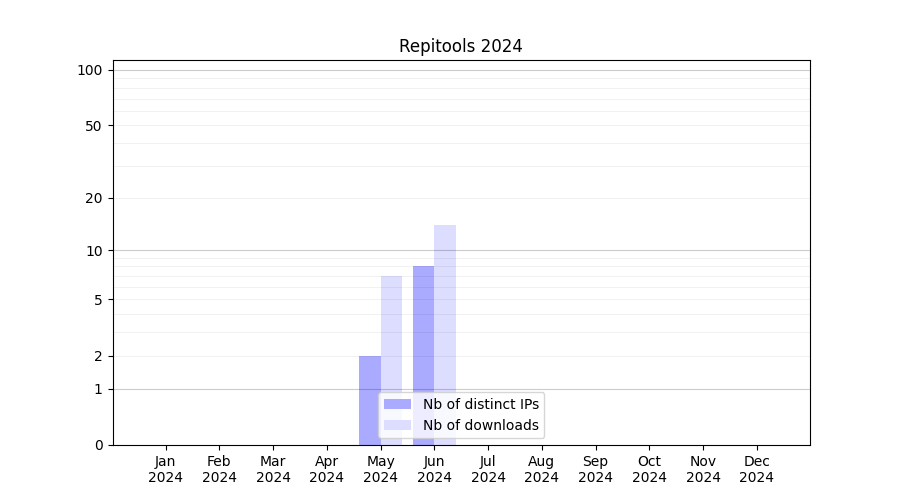 Number of downloads for workflow package Repitools, year by year, from 2025 back to 2015 (years with no downloads are omitted):