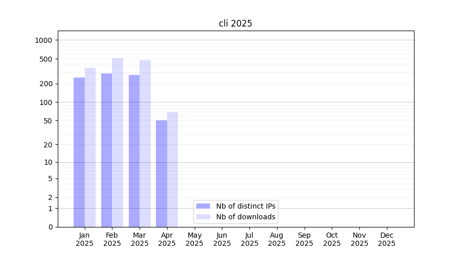 Number of downloads for workflow package cli, year by year, from 2025 back to 2015 (years with no downloads are omitted):
