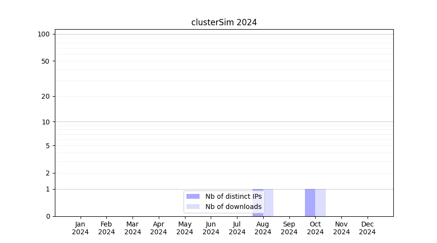 Number of downloads for workflow package clusterSim, year by year, from 2025 back to 2015 (years with no downloads are omitted):