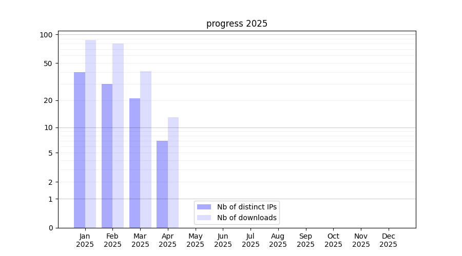 Number of downloads for workflow package progress, year by year, from 2025 back to 2015 (years with no downloads are omitted):