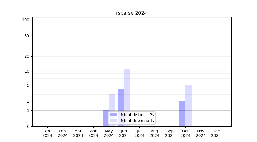 Number of downloads for workflow package rsparse, year by year, from 2025 back to 2015 (years with no downloads are omitted):