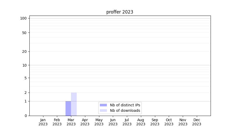 Number of downloads for experiment package proffer, year by year, from 2025 back to 2014 (years with no downloads are omitted):
