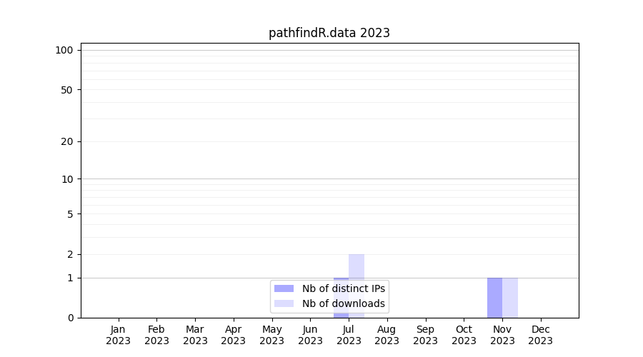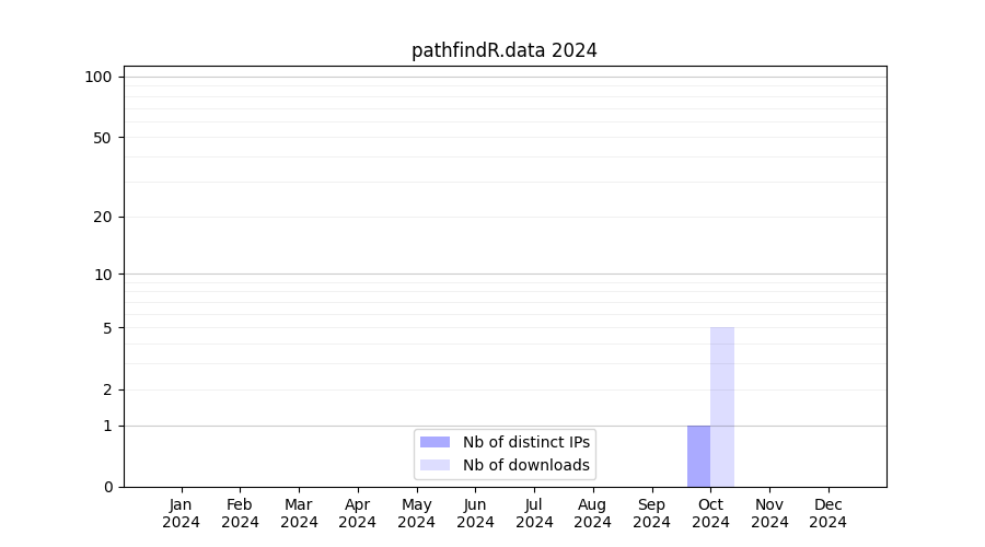 Number of downloads for workflow package pathfindR.data, year by year, from 2025 back to 2015 (years with no downloads are omitted):