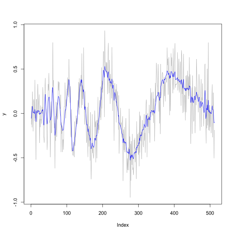 wd <- wd(y, family="DaubLeAsymm", filter.number=6, bc="periodic") # Wavelet decomposition