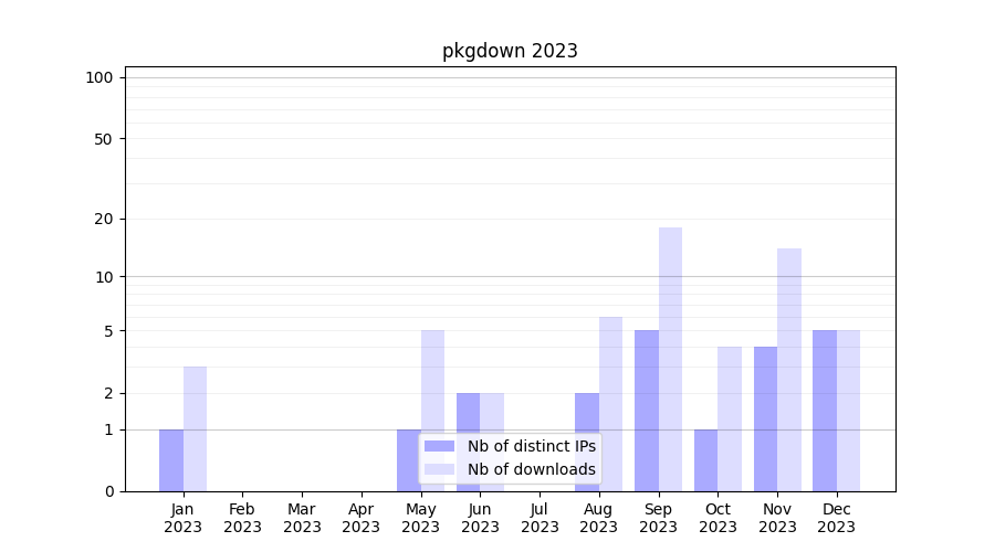 Number of downloads for workflow package pkgdown, year by year, from 2025 back to 2015 (years with no downloads are omitted):